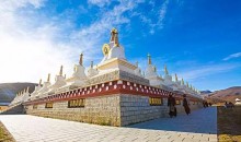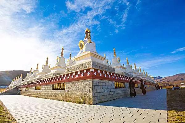 11:00 前往稻城白塔(20分鐘),它又叫尊勝塔林,是稻城的門戶, 由一個(gè)主塔和119個(gè)小塔組成,每天也都有人來轉(zhuǎn)經(jīng),尊勝塔林的108個(gè)小塔內(nèi)放置的是釋迦牟尼佛祖,主塔內(nèi)放置的是尊勝佛母,尊勝佛母,音:“朗覺瑪”,乃長壽三尊之一,主長壽,因?yàn)樗頋嵃祝匀∶麨榘姿驹谒敚憧筛╊麄€(gè)稻城縣城。稻城的白塔是康南地區(qū)唯一的一個(gè)公園,以藏族同胞心中至高無上的白塔為主題,在全世界是絕無僅有的;