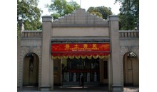 在東山區文明路6號(現為215號)。原為廣東高等師范學堂的鐘樓,鐘樓大院的前面有塊寬闊的廣場,占地面積17460平方米,廣場中間是一片大草坪,東西兩端各有一個大講臺,周圍綠樹成蔭,正門是開拱形圓柱廊,廊上有平臺,廊下是門廳。底層四周是柱廊走道。鐘樓的前半部為二層,后半部為一層。