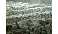秦陵地宮展覽館,位于“千古一帝”秦始皇帝陵西側大約2公里。這是一個人造景點,是根據(jù)司馬遷對秦陵地宮的描述所建。秦陵地宮占地面積16650平方米,建筑面積4500平方米,分為上下兩層,通高25.7米,其中地下8.7米,整體以橫剖縱貫的手法,再現(xiàn)了秦始皇陵陵園地貌和地宮,向游人展示了二千多年前秦始皇陵的輝煌雄偉和壯觀氣勢。