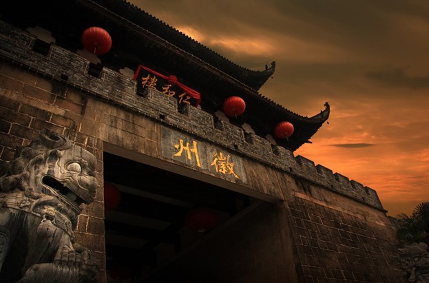 徽州古城——坐落在國家歷史文化名城歙縣縣城徽城鎮中心,千年徽州府治所在地,主體建筑有仁和樓、得月樓、茶樓、惠風石坊、徽園第一樓、過街樓、古戲樓等以及鑲嵌其間的古色古香商品住宅樓百余間,是展示和體現徽州文化的重要實物建筑。