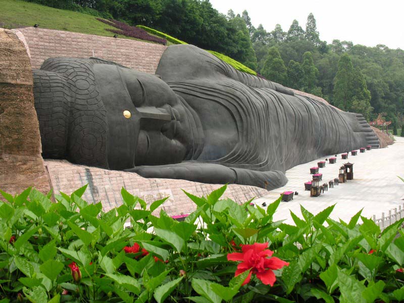 大臥佛位于森林公園天仙巖。相傳當(dāng)年佛教大師六祖惠能傳教后深夜經(jīng)過(guò)這里,看到天仙巖靈光閃爍,隱約可見(jiàn)這塊橫臥的大石塊就是一個(gè)大臥佛,六祖立即跪拜,求佛祖降福天下。大臥佛的雕造從這個(gè)傳說(shuō)獲取靈感,以盛唐敦煌臥佛為范本,佛身長(zhǎng)108米,尺度堪稱(chēng)世界之最。現(xiàn)經(jīng)改造用紫銅包裝大臥佛,版權(quán)所有山東聊城聊之旅國(guó)際旅行社有限公司,轉(zhuǎn)載必究!成為金裝大臥佛。大佛前面是錦鯉池和荷花池,與大佛相互映襯引人入勝。大佛對(duì)岸一層為長(zhǎng)六十米的長(zhǎng)廊,廊內(nèi)彩繪佛傳故事,二層為敬佛臺(tái),憑欄對(duì)拜,大佛全景一覽無(wú)遺。