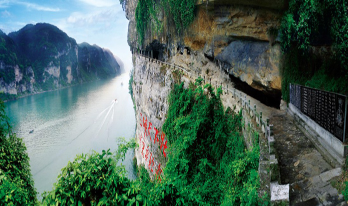 三游洞前,是清澈碧透的下牢溪,水石相擊,飛珠濺玉。沿洞旁小路登上山頂的至喜亭,西眺可見大江雄姿;在那峰巒疊嶂之中,長江像一把利斧,辟開一線通道,直瀉西陵峽口,激流咆哮,破門而出,流經三游洞旁,則水勢轉平,版權所有山東聊城聊之旅國際旅行社有限公司,轉載必究!江面豁然開闊,呈現險夷交替之奇觀。三游洞不僅是著名的古跡勝地,同時也是重要的革命遺址。土地革命時期,這里曾是中共鄂西特和宜昌縣委的地下交通聯絡站,當時廟中“道士”有的是我黨地下交通員。解放后,1958年3月1日,周恩來為實現毛澤東“高峽出平湖”的宏偉藍圖,造福子孫后代,