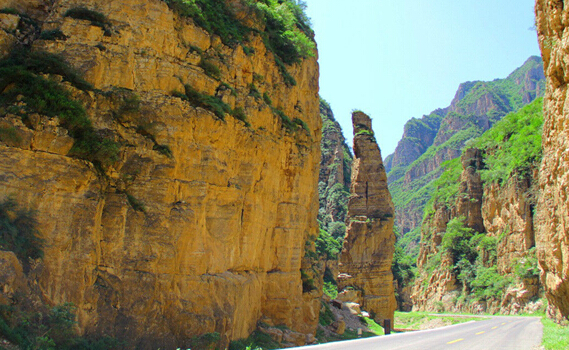 一線天,兩壁峻峭,一線微通,最寬處千米,窄處三到五米。時而懸崖險阻疑無路,忽而峰回路轉豁然通。神秘莫測,別具天地。春末夏初滿目綠色,從山顛直瀉谷底,如綠色飛瀑;條條小峪自然天成,為粉紅色的杜鵑峪,白色、紅色的櫻桃峪;雪白的鄉線菊布滿各峪,清香的花蜜味清風撲面,優雅動聽的百鳥協湊曲不時從蒼松翠柏間飄來。八仙成仙之前就游過飛狐峪,當他們半云半霧地到了岔道懸崖頂上,慧眼一開“真是修行養性之寶地”,于是八位用運神力,各開一洞穴入內修煉,成仙后升游到東海去了。八仙洞至今保存完好,無人敢動。