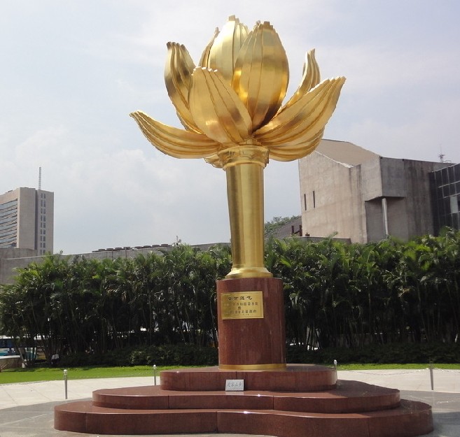 主體部分由花莖、花瓣和花芯組成,青銅鑄造,表面貼金裝飾,形似蓮葉的基座部分則由二十三塊紅色花崗巖相疊組成,寓意澳門三島。蓮花是澳門特別行政區區花,蓮花盛開、亭亭玉立、冉冉升騰,象征澳門永遠繁榮昌盛。