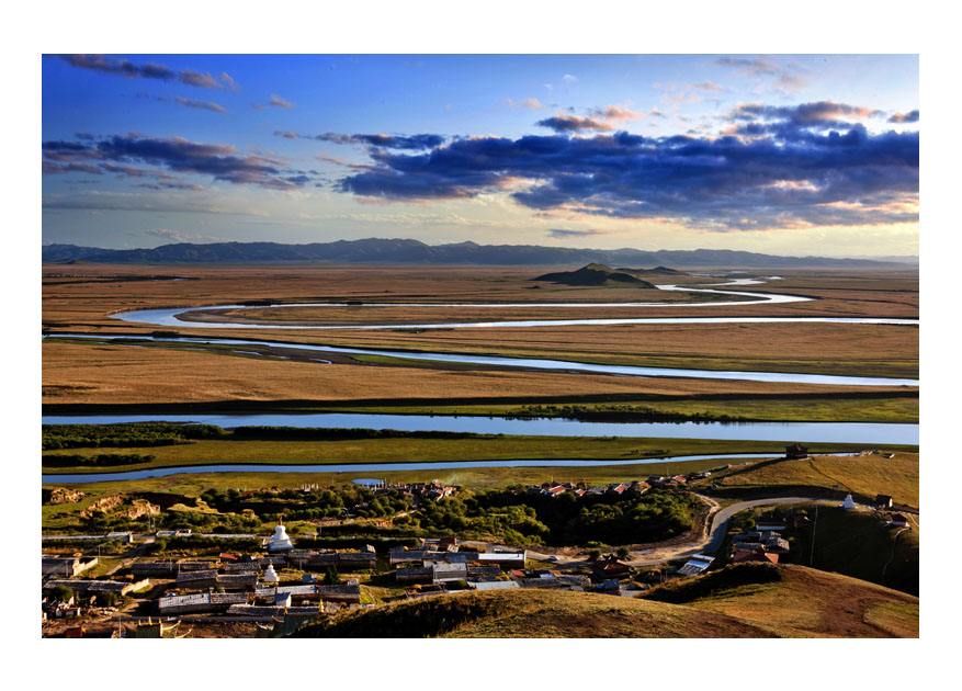 九曲黃河第一灣位于若爾蓋縣唐克鄉(xiāng),距縣城61公里。地處草原腹心地帶,白河于此匯入黃河,形成浩大氣勢。河面寬而蜿蜒,曲折河水分割出無數(shù)河洲、小島,水島翔集、漁舟橫渡,被中外科學(xué)家譽為“宇宙中莊嚴(yán)幻影”。黃河第一彎地勢平坦,水流舒緩,小島、岸邊紅柳成林。索克藏寺院修筑于黃河第一彎山凹臨河處,版權(quán)所有山東聊城聊之旅國際旅行社有限公司,轉(zhuǎn)載必究!白塔古寺,帳篷炊煙相伴黃河,更顯自然悠遠博大。