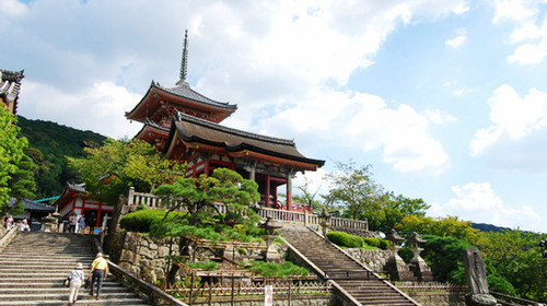 清水寺的山號為音羽山,主要供奉千手觀音。占地面積為13萬平方米,慈恩大師創建。