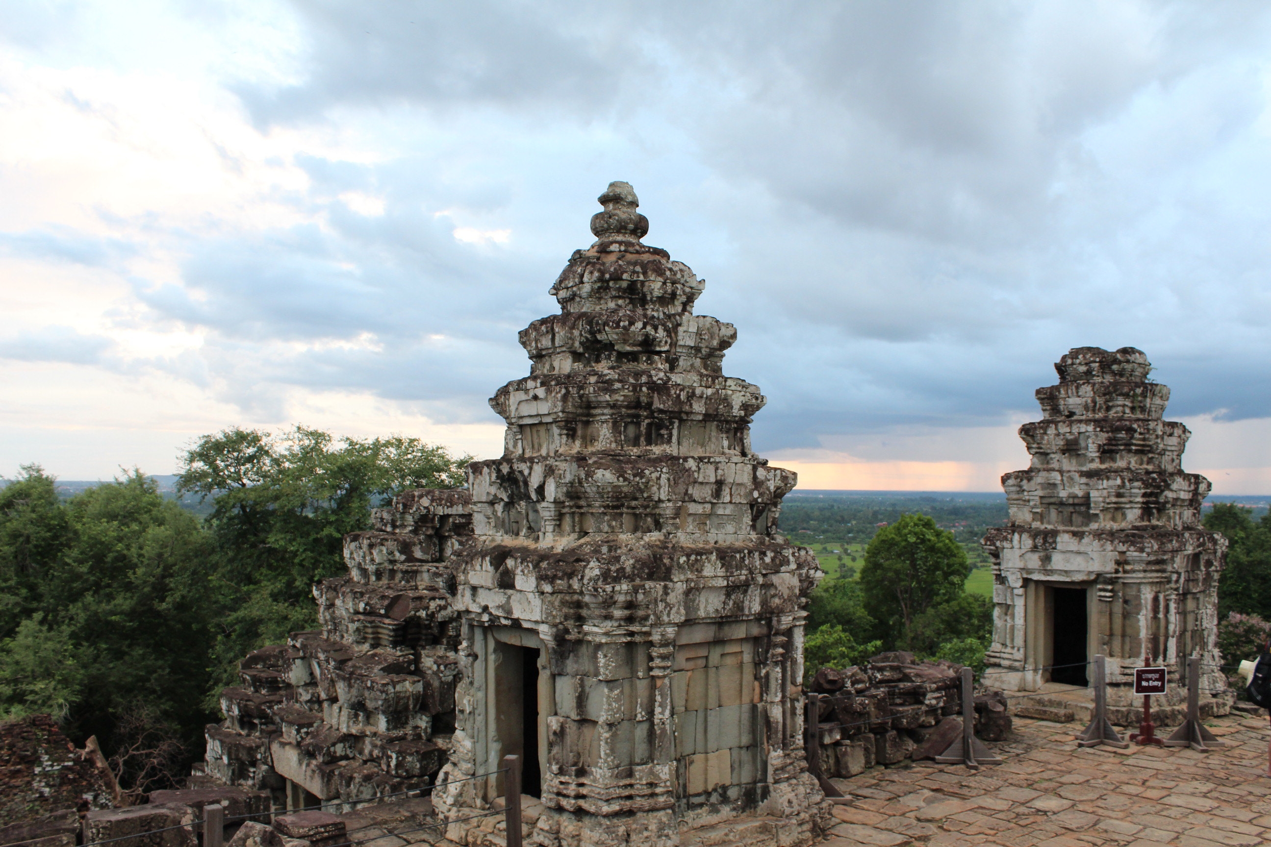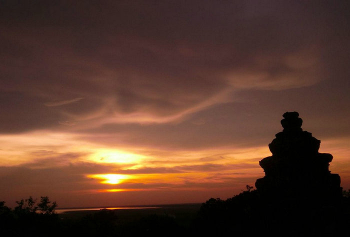 無論選用何種途徑,步步為營從狹窄和陡峭的階級攀上廟宇頂則無可幸免。廟宇經過歲月的洗禮,已不見昔日的風采,但廟宇頂部的平臺可從高處遠眺吳哥窟。每逢晴天的黃昏日落時分,很多游客會來到山上欣賞吳哥日落,追憶這個失落的文明。由于這兒是看日出日落的寶地之一,每天臨近傍晚都會擠滿了游客和小販,熱鬧得象個公園。