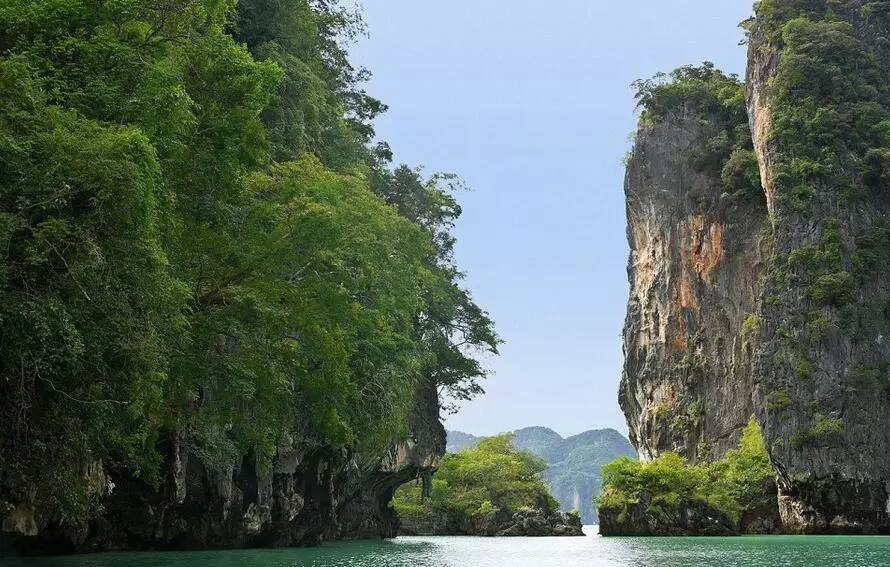 攀牙灣山峰聳峙,海景如畫,風光雄渾壯麗,酷似桂林的山水:屏干島(KoPingkan),由兩面山峰傾斜地相疊一起,呈倒V字形,山壁如削,平滑如鏡,稱為依靠山。版權所有山東聊城聊之旅國際旅行社有限公司,人在石壁下仰首翹望,儼然一線天;塔布山,形狀像鐵釘一樣插在海底,高約30多米,由于受海水的侵蝕而上闊下窄,狼牙棒似的頭大后細的山峰,傲然兀立于壯闊的海上,直指云天,氣勢昂揚。