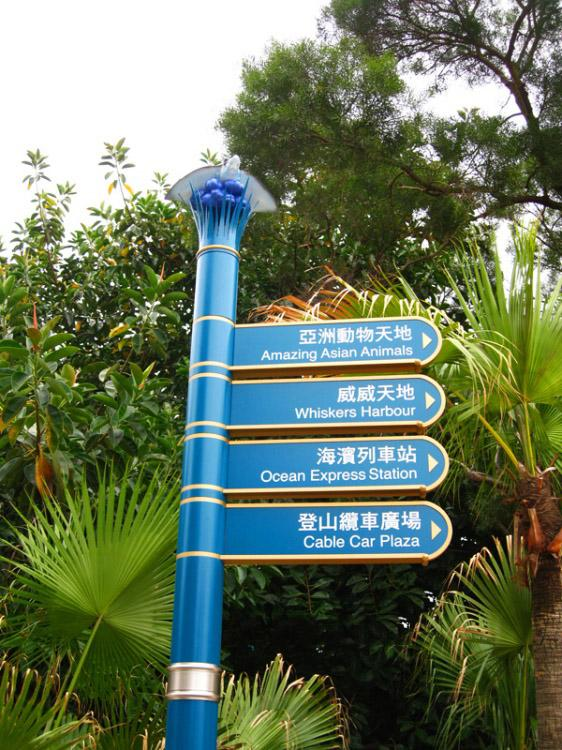 海洋公園的入口風景也不錯,港味蠻濃的,給人一種很舒服的感覺,當然最舒服的還是坐在纜車上,吹著清新的海風,欣賞南中國海的廣闊海景,此時此景,如果再和自己心愛的人在一起,說點悄悄話,還有什么比這更溫馨浪漫的呢? 坐纜車的確舒爽,不過也要排超過一公里的長隊,這也是一個普遍問題,像極速之旅等刺激的機動游戲我都想玩,但看了排的長龍之后還是一聲嘆息:算了吧,就這樣忘了吧。