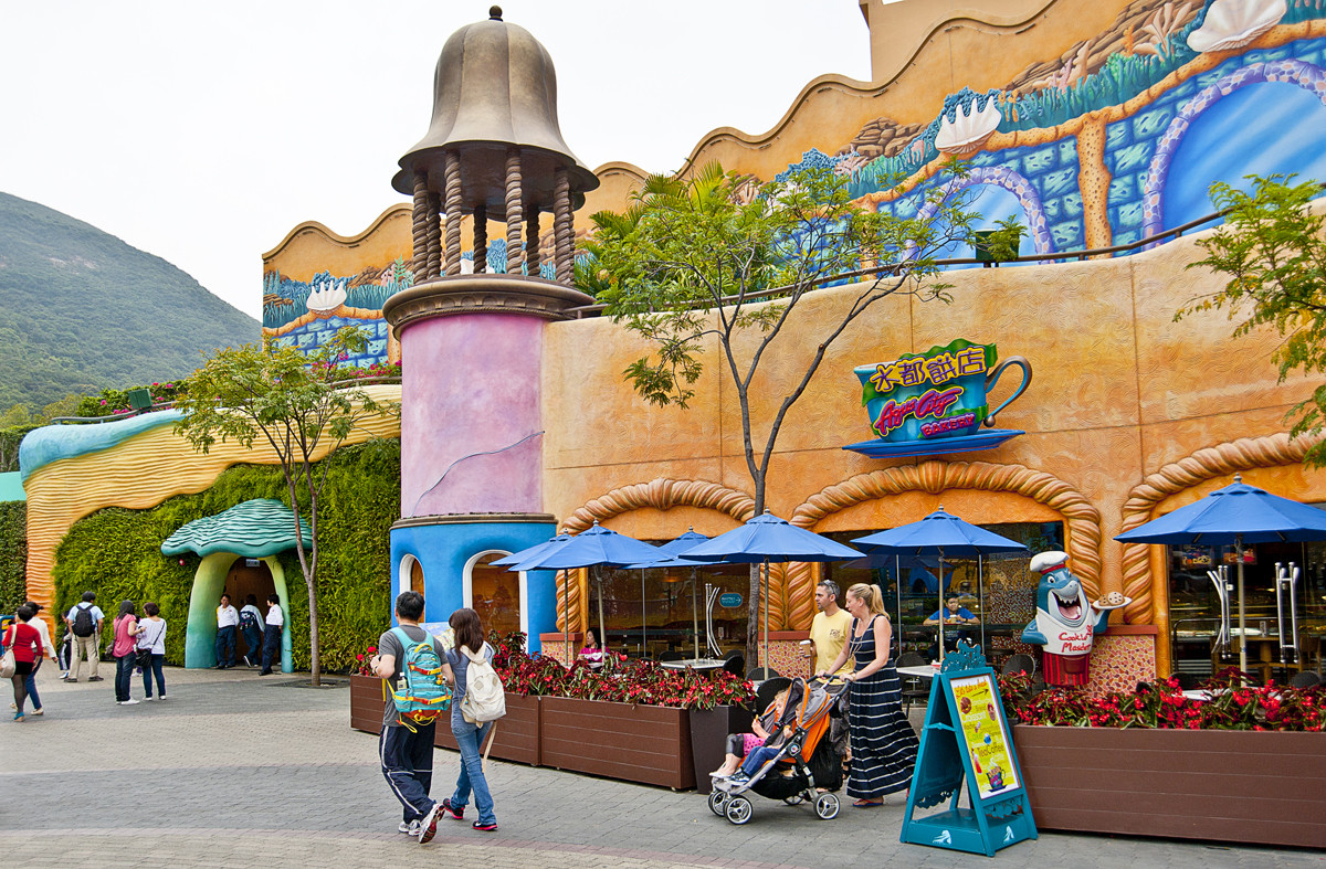 區內的海龍王餐廳更是香港第一間在水族館內的餐廳,設有210個座位,游人將可一邊欣賞壯觀的水底世界,一邊品嘗中、日及西式食物。