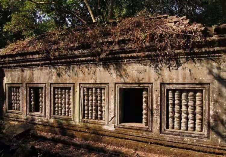 崩密列建于11世紀末到12世紀初,即Suryavarman II時期。這座印度廟宇是用來供奉濕婆神的,是吳哥建筑群第一座完全用沙石建筑的廟。這是一座破敗、隱秘,未經修繕的寺廟,這座神廟從來沒有完工,原本應該有浮雕的寺墻上都空空如也。正由于它的原始風貌,有人說這里是吳哥遺跡群中最值得去同時也是最難前往的遺跡。