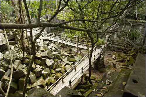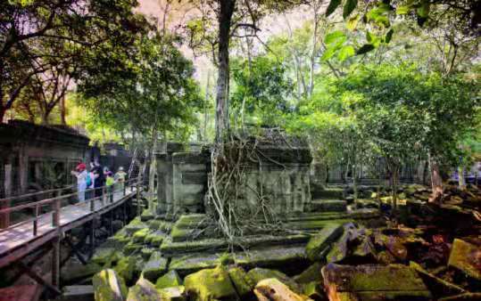 崩密列不屬于常規的吳哥景區范圍內,所以一般的旅游團行程中很少會包括這個景點,因為確實有些太荒僻了。崩密列在廢棄的庭院和塔之間,樹木草叢茂密地生長著。崩密列護城河呈十字型對稱建造,中心為未修繕好的殘垣斷壁。從護城河進入寺廟中心的路上,有很多當地的貧困小孩會向游客乞討。很多年來,這里一直都是難以到達的地方,不過鋪筑的道路使得很多游客都慕名而來。