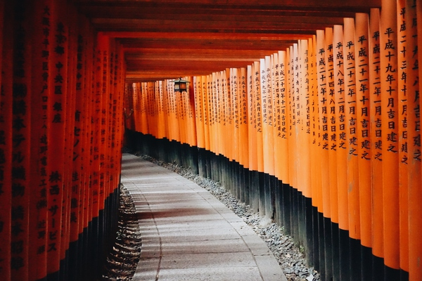 日本伏見稻荷大社建于8世紀,主要是祀奉以宇迦之御魂大神為首的諸位稻荷神。稻荷神是農業與商業的神明,香客前來祭拜求取農作豐收、生意興隆、交通安全。它是京都地區香火最盛的神社之一。