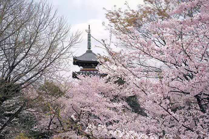 早在1624年便修建完備的寬永寺,至今仍立于不忍池畔。正是寬永寺建立之時移種的櫻花,開啟了上野公園賞櫻名園的歷史。如今上野公園已有1300多株櫻花,其中櫻花名品“染井吉野”,就是由上野公園開始而為世人廣知的。每年櫻花花季時,上野公園櫻花大道的緋紅云朵,早已在魯迅筆下化為國人對日本櫻花的第一印象。而花開時節在夜間燈光下觀賞“夜櫻”,是日本人賞櫻的獨特方式。