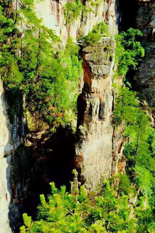據明朝萬歷年間編寫的《慈利縣志》記載,神堂灣原名叫“神堂寨”,位于索溪峪的西部,是一塊充滿神秘感的半圓形深峪洼地。 神堂灣三面都是懸崖絕壁,只有一面山上有一道缺口,可向灣底俯瞰。你會產生一種神秘感。