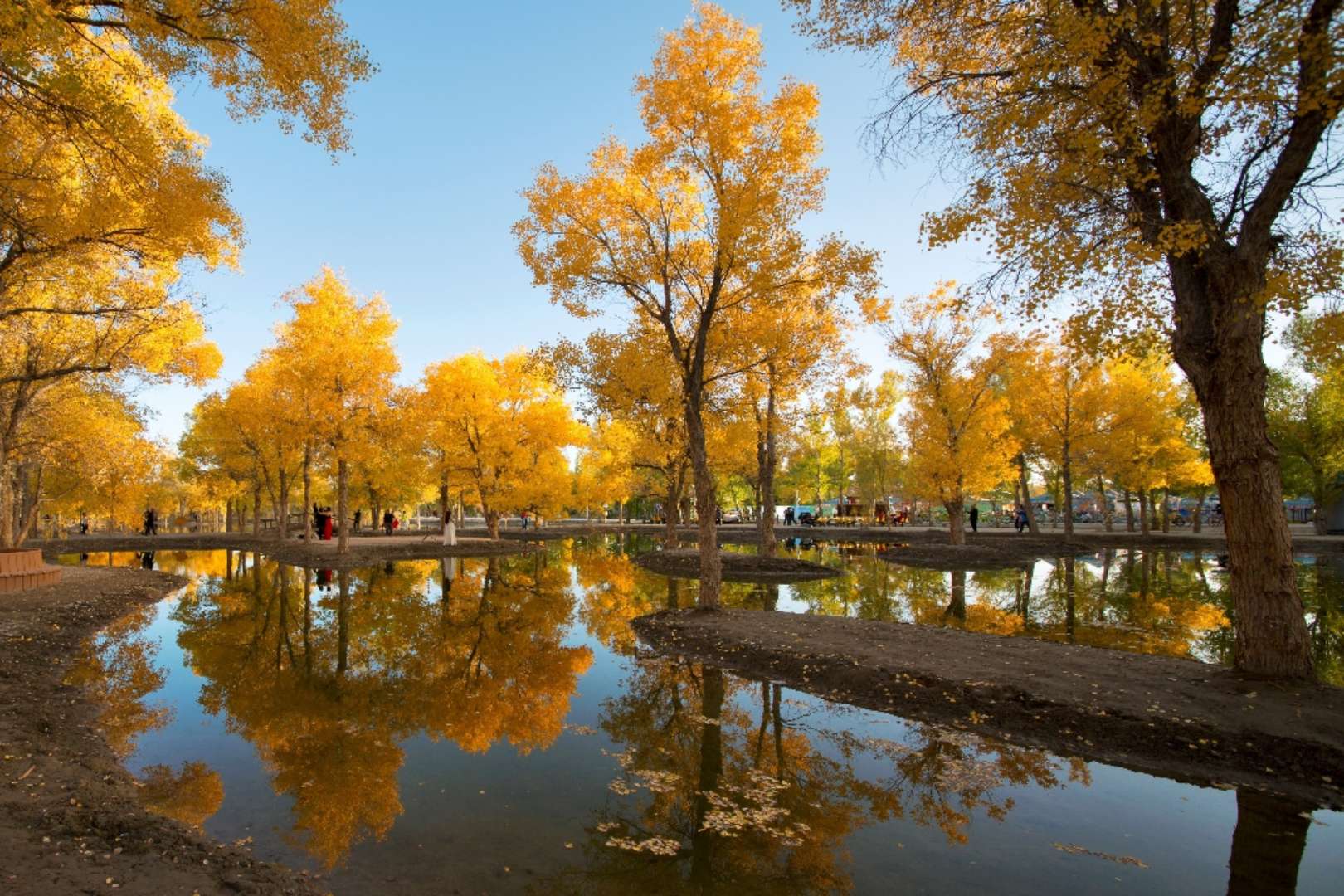 化的植物,大多是野生,被人們譽為“沙漠勇士”。胡楊林是一種神奇的群體,它們耐寒、耐熱、耐堿、耐澇、耐干旱。胡楊生長期漫長,由于風沙和干旱的影響,很多胡楊樹造型奇特、詭異,是一種神奇的自然景觀和獨特的人文景觀,堪稱大漠中的一顆綠色明珠,所以胡楊樹有“活三千年不死,死三千年不倒,倒三千年不朽”之稱。版權所有山東聊城聊之旅國際旅行社有限公司,轉載必究!每年9、10月,當第一場秋霜,大片的胡楊林由綠變黃,一眼望去,陽光下金色的樹葉趁著湛藍的天空于風中婆娑起舞,那種強烈的反差,鮮明的影調,亮麗的色彩,足以令任何語言文字顯得蒼白無力。胡楊是中亞地區唯一適合生長的喬木,它是大自然漫長進化過程中幸存下來的寶貴物種。它嫵媚的風姿、倔強的性格、多舛的命運激發人類太多的詩情與哲思。古往今來,胡楊已經成為一種精神而被人們所膜拜。