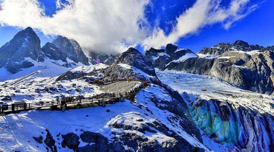峰扇子陡東北坡,是玉龍雪山現代冰川的典型代表。乘坐玉龍雪山旅游索道(自3356米-終4506米)十五分鐘到達。