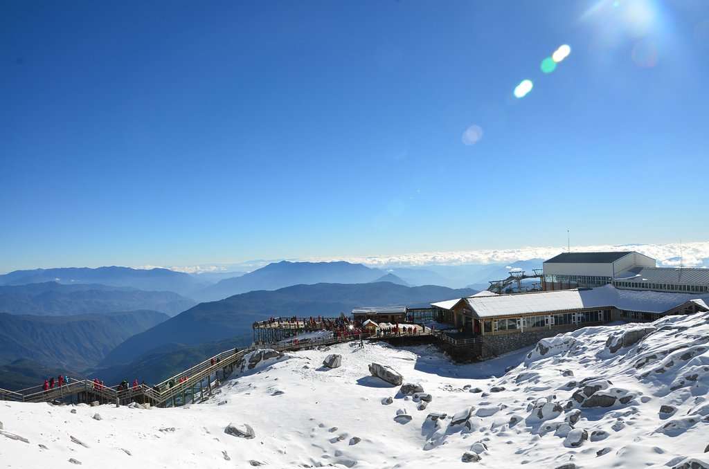 是雪山大索道的起點站,一片茂密的原始森林,這里海拔3356米,索道由此往上運行,直至雪山主峰扇子陡正下方的上部站,那里海拔4506米。版權所有山東聊城聊之旅國際旅行社有限公司,轉載必究!索道全長2914米,垂直高差1150米。是我國海拔最高的旅游客運索道。索道采用6人座豪華脫抱式全封閉吊箱,安全舒適,你的行程由下部站的茫茫林海,到上部站的白雪皚皚,中間運行時間僅為半小時,而你卻有經歷四季之感。強烈的季節變化,冷暖的差異,景物的轉換,會使你興奮不已,因為玉龍雪山是云南亞熱帶的極高山地。從山腳河谷到峰頂具備亞熱帶,溫帶到寒帶完整的垂直自然景觀,而你在極短時間里旅游體驗到。