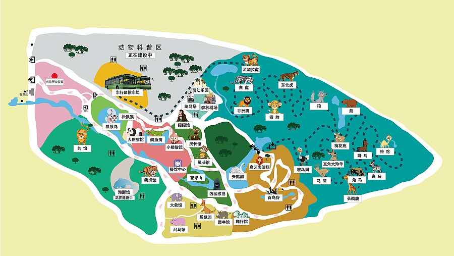 線路二:大門入口→車行區(qū)(車行時間30分鐘)→步行區(qū)→大熊貓館→鱷魚館→小熊貓館→靈長類動物館→百鳥樂園→爬行動物館→大象馴化(11:30)→豹館→節(jié)尾狐猴島→游園結(jié)束