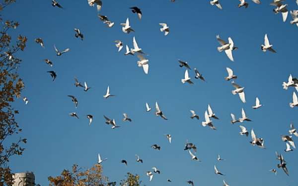 人鴿共處,禽情親情,水乳交融,呈現一派歡樂祥和的景象。