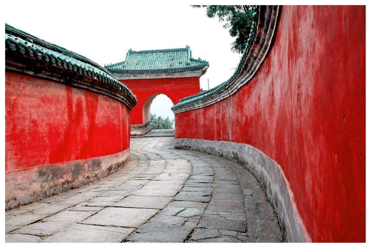 走進復真觀的山門,看到在古道上依山勢起伏建有71米長的紅色夾墻,這就是九曲黃河墻。九曲黃河墻構思布局及用意都十分巧妙,流暢的弧形墻體,似波浪起伏,氣勢非凡;彎曲高大的紅墻,對初來乍到的虔誠香客,無疑是一次“誠信”的考驗。