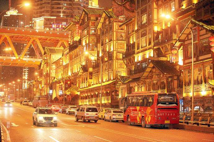 洪崖洞一共有11層,夜晚燈光是從晚上6點開燈,10點熄燈。
