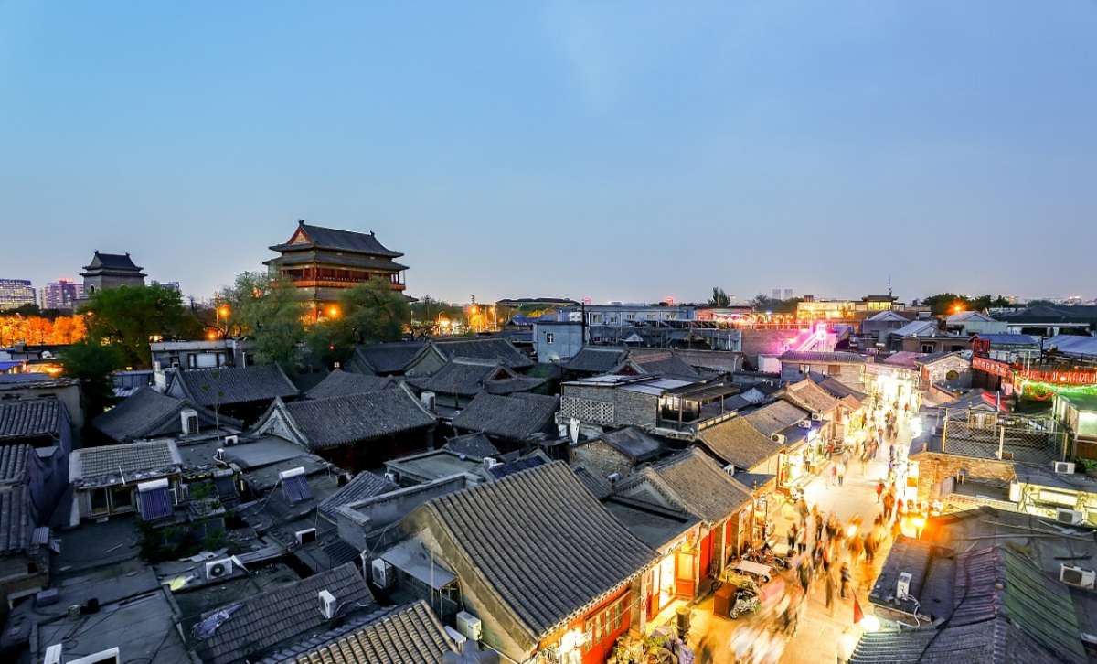 鼓樓位于北京城中軸線的地安門外大街北端,為古代城市的報時臺。清代劃每夜為五節,每節為兩小時,晚7時至9時(戌時)曰定更(又稱起更或初更);9時至11時(亥時