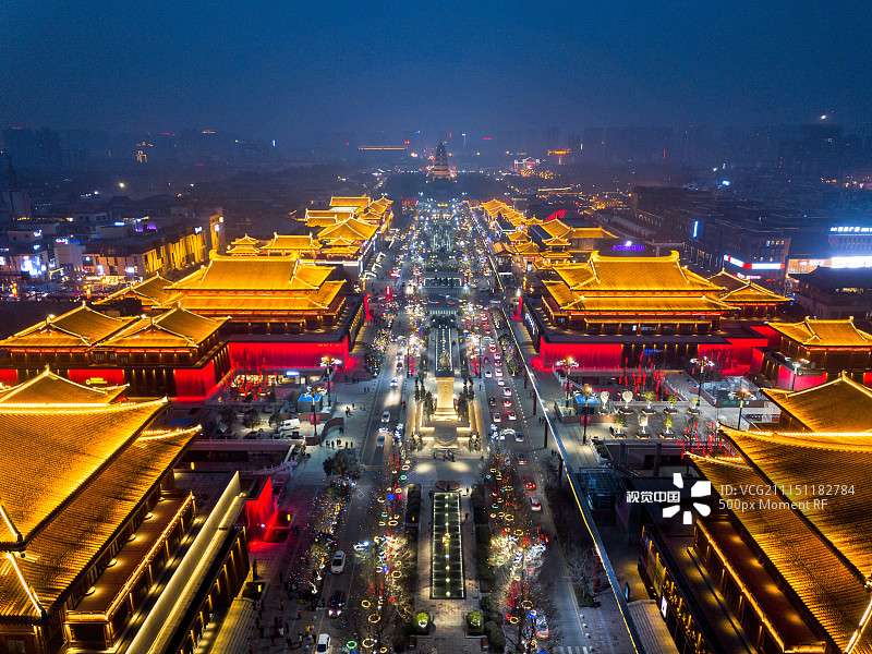 橫貫南北的中央雕塑景觀步行街,其上分布著盛世帝王、歷史人物、英雄故事、經典藝術作品等九組主題群雕,立體展現大唐帝國在宗教、文學、藝術、科技等領域的至尊地位并彰顯大國氣象。貞觀紀念碑是不夜城的地標性雕塑,由李世民騎馬像組成及周圍的附屬雕塑組成:中間,李世民威武端跨高頭大馬之上手,抖韁繩欲勒馬前行,意氣風發;四周,號手、旗手各半的24人儀仗隊、鼓手2人及文臣武將各3人緊密相隨。版權所有山東聊城聊之旅國際旅行社有限公司,轉載必究!碑體正面雕刻“貞觀之治”四字,背面為貞觀政要名錄數百字。據中央美術學院雕塑研究所副所長、教授段海康介紹,該紀念碑是他和他的創作團隊將大唐時期的雕塑元素和西方紀念碑式雕塑創作手法相結合精心創作的,以反映大唐帝國的繁榮盛況和李世民的文治武功。碑體由暖黃色花崗巖雕琢而成,而李世民及其坐騎由青銅鑄成。主雕塑南北長36米,南北寬18米,總高17.95米,總重量約8到10噸。亞洲最大的景觀大道改造完成,以李世民、李隆基、武則天、玄奘等一代帝王、歷史人物、英雄故事為主題的大唐群英譜雕塑以九組雕塑群與現代化的水景系統、燈光系統、立體交通系統有機結合,多維再現盛唐風范。隨著西安音樂廳、曲江美術館、曲江電影城三大文化場館的盛大開放,亞洲最炫美的大唐雕塑景觀步行街的亮相,西安新樂匯等大型城市商業綜合體全面開業。大唐不夜城
