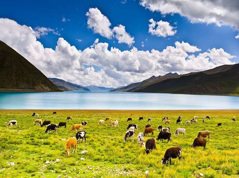 羊卓雍措被譽為世界上最美麗的水。羊卓雍措,“羊”:上面;“卓”