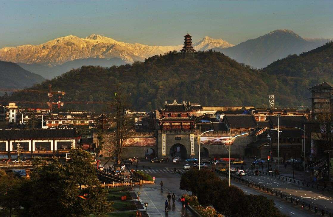 古城從2009年底開始實施整體打造,界面建筑全部按照川西明清風格打造,同時引水入城,蜿蜒回旋,置身其中,仿佛實現了歷史穿越,現代的煩惱和喧囂也同時驅散一空。夜間,古城和玉壘閣及山間亭閣共同亮燈,為災后重建的美麗古城再添一景。