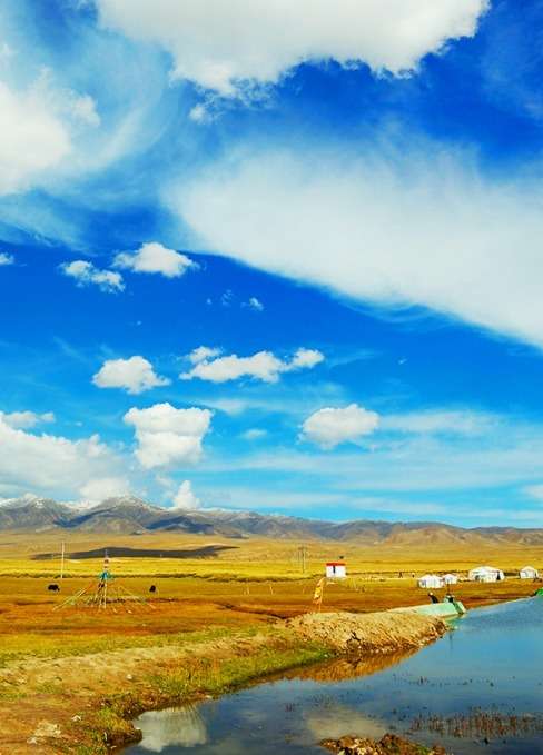 倒淌河發源于日月山西麓的察汗草原,是青海湖水系中最小的一支。河流蜿蜒曲折,河水清澈見底,看上去猶如一條明亮的緞帶飄落在草原上那樣神奇迷人。