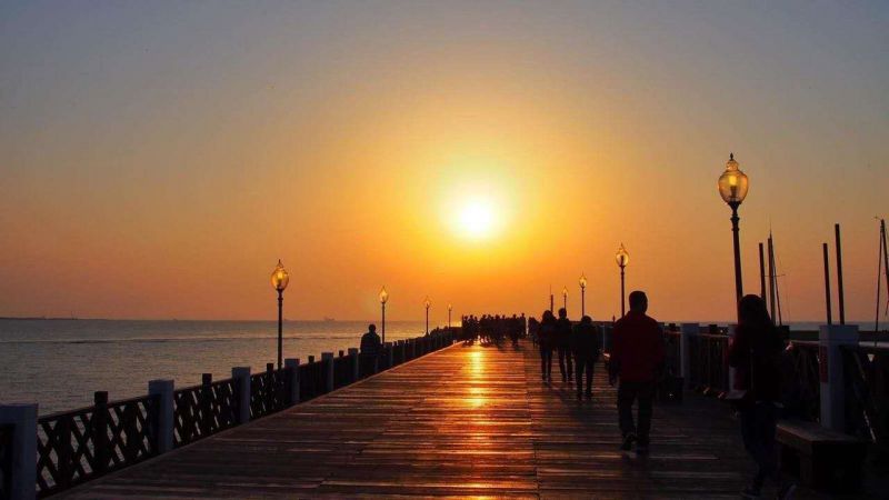 淡水漁人碼頭原只是一個傳統的小漁港,如今,漁人碼頭不但擁有一座美輪美奐的浮動碼頭,其中漁人碼頭最著名的景點,就是330多公尺的木棧道、堤岸咖啡和超大的港區公園,版權所有山東聊城聊之旅國際旅行社有限公司,轉載必究!構成一個環狀動線,讓人們可以完整流暢的體驗漁港風情,站在步道遠眺對面的觀音山和出海口盡頭的臺灣海峽,看著夕陽從水平面上緩緩落下,美景之盛,令人流連忘返。