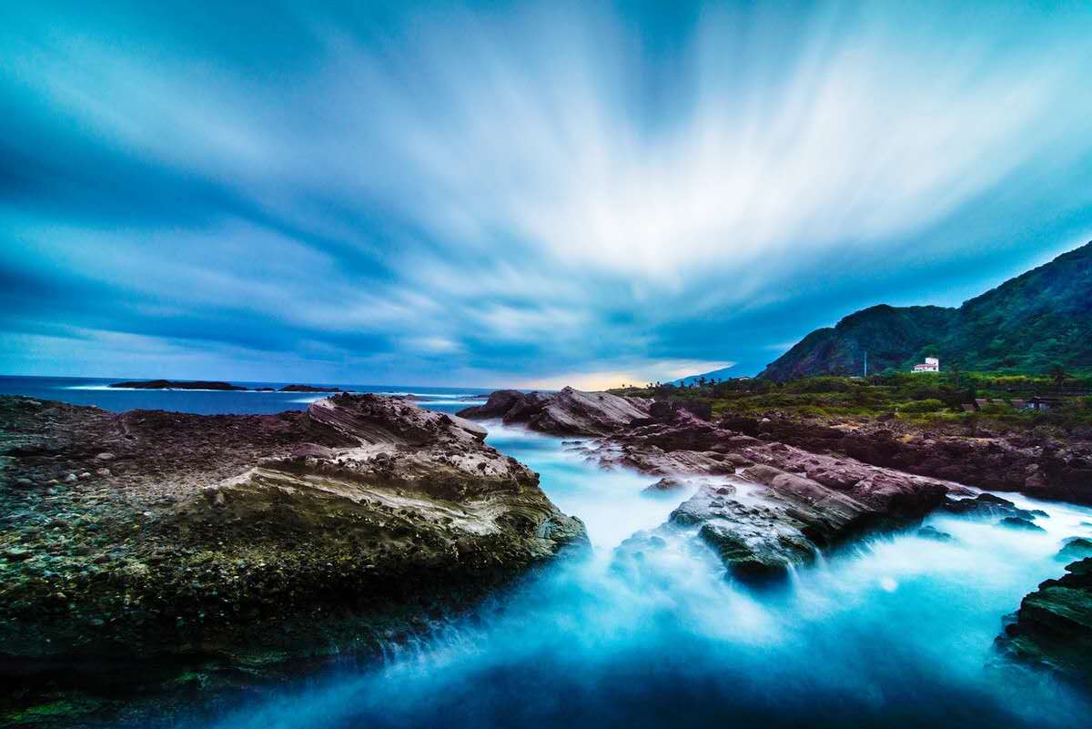 站在石梯坪怪石林立的海岸上,面對(duì)碧波萬(wàn)頃、浩瀚湛藍(lán)的太平洋,看海浪洶涌,波濤澎湃,浪花飛濺,真是令人心曠神怡。