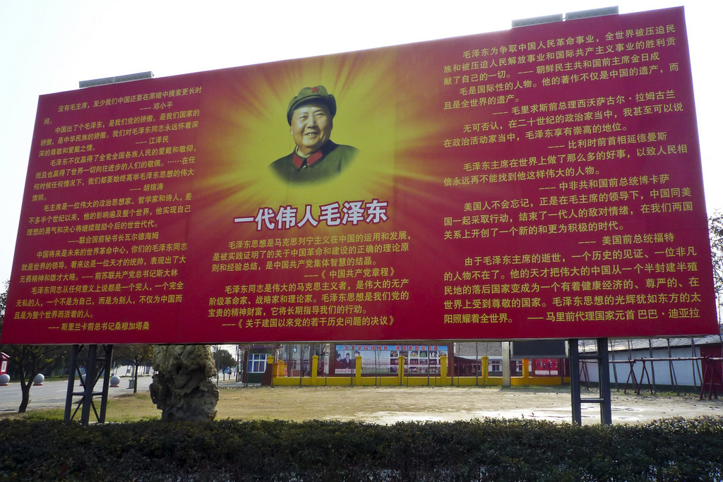 南街人正以豪邁的熱情,在建設共產主義小社區的征程上奮進。“東方紅太陽升,中國出了個毛澤東……” 早上6點15分,南街村的廣播站開始播放頌揚毛澤東的革命歌曲《東方紅》, 毛澤東的雕像如守護神一樣聳立在南街村的廣場上。廣場上還有“毛澤東思想永遠放光芒”等大標語。南街村新的一天便伴隨這輕快旋律開始。