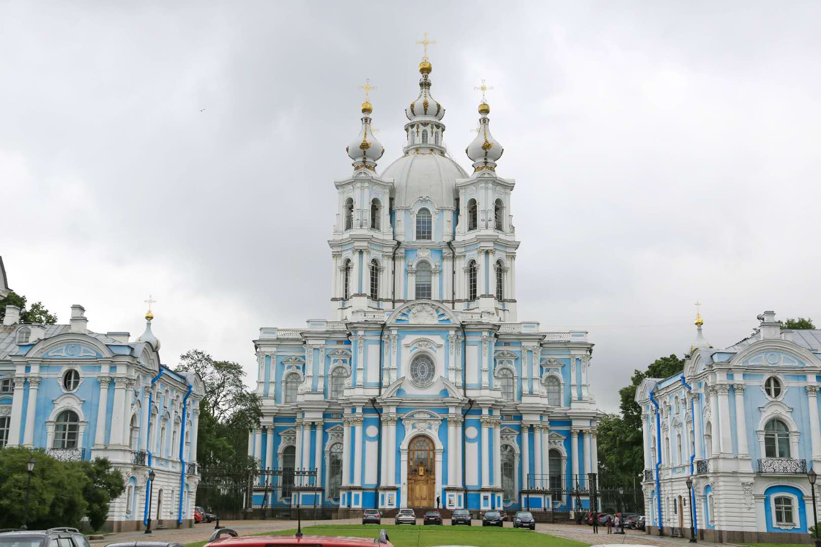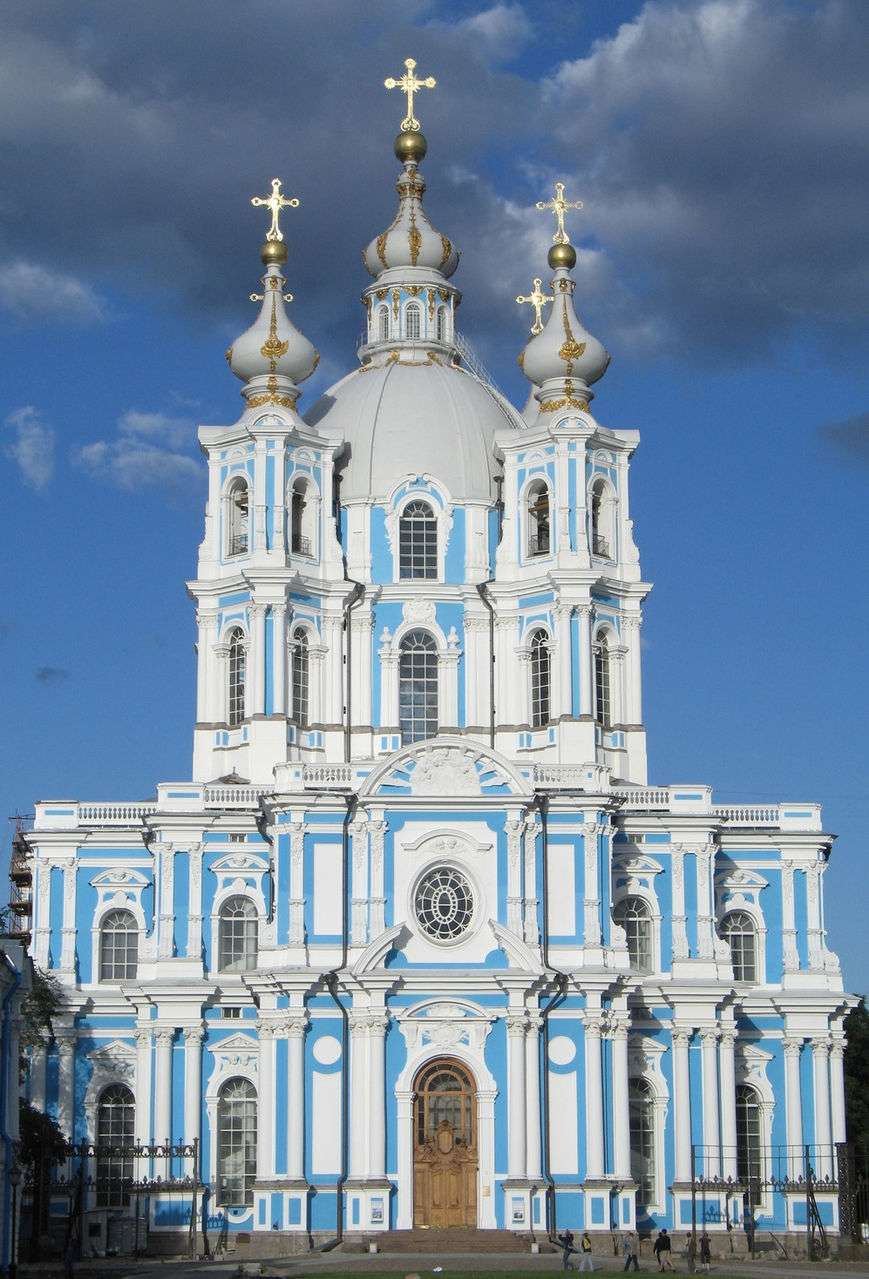 斯莫爾尼宮(Smolny),位于圣彼得堡市的東北部,在涅瓦河轉(zhuǎn)彎的地方,是一座外觀典雅的三層建筑,它建于1806—1808年,原為貴族女子學(xué)院。“斯莫爾尼”一詞來自俄語“瀝青”,初建時(shí)這里屬于瀝青廠,在蘇聯(lián)時(shí)期作為列寧格勒市政府辦公樓,現(xiàn)為圣彼得堡市政府,從市長到各處、陸軍部、內(nèi)務(wù)部仍在此辦公。斯莫爾尼宮位于圣彼得堡市中心,整體色彩和皇村的葉卡捷琳娜宮的色彩相同,為拜占庭藍(lán)白相間,是巴洛克風(fēng)格和拜占庭風(fēng)格的融合,在圣彼得堡的諸多宮殿里具有相當(dāng)高的代表性。