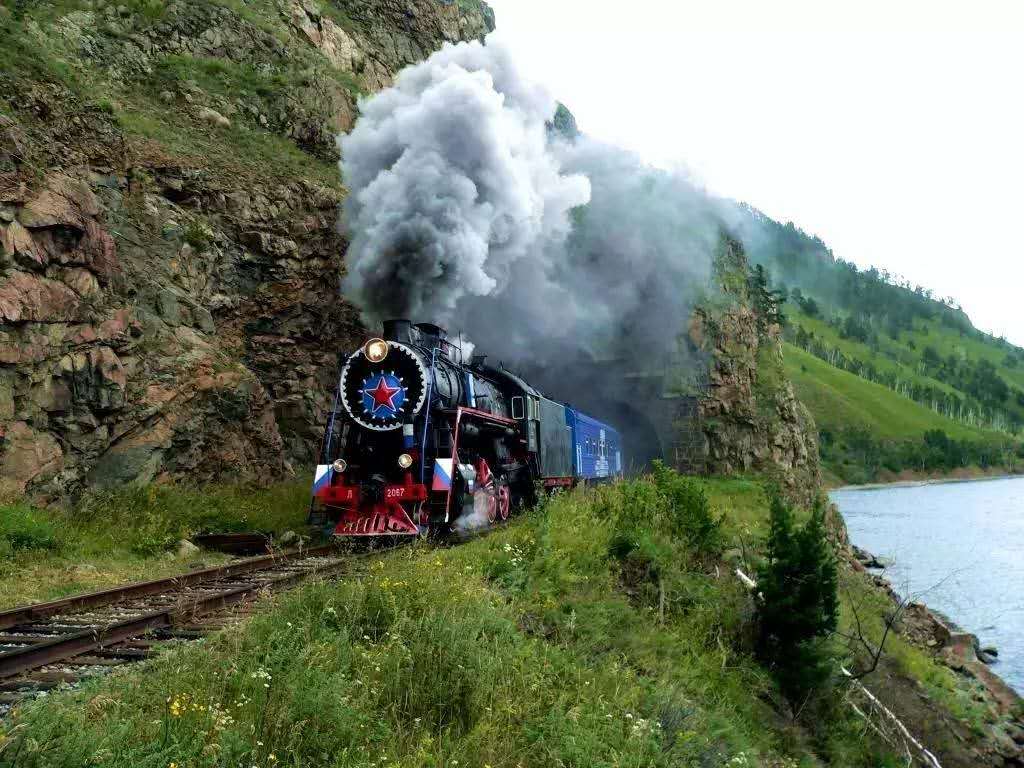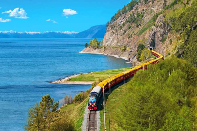 環貝加爾湖的鐵路本來是西伯利亞大鐵路的一部分。西伯利亞大鐵路西起莫斯科,跨越八個時區和16條歐亞河流,沿途經1000多個車站,一直通往日本海沿岸的符拉迪沃斯托克(海參崴),總長9200多公里。