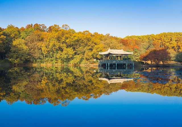 流徽榭又名水榭亭,是南京鐘山風景名勝區內一處景色優美的風景點,位于中山陵園,在中山陵至靈谷寺公路的南邊。榭長14米,寬 10米,頂為乳白琉璃瓦,紅色立柱; 三面臨水,碧水如鏡,倒映水榭, 別有情趣。