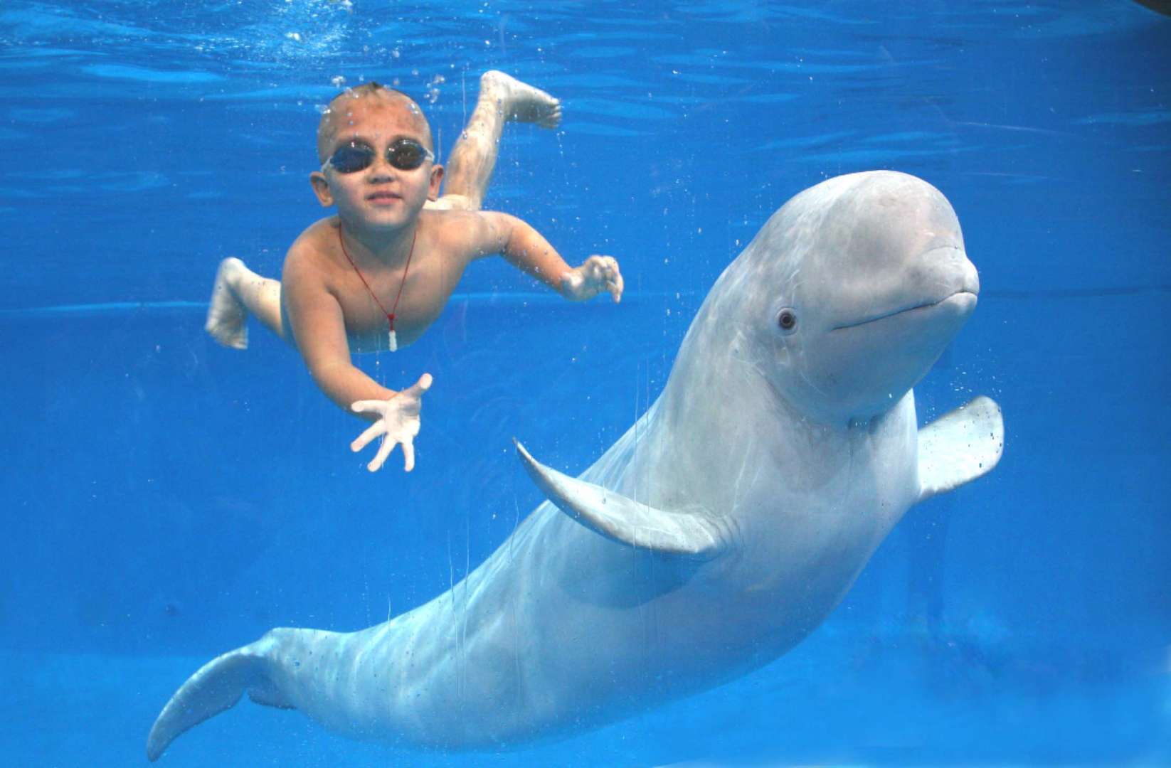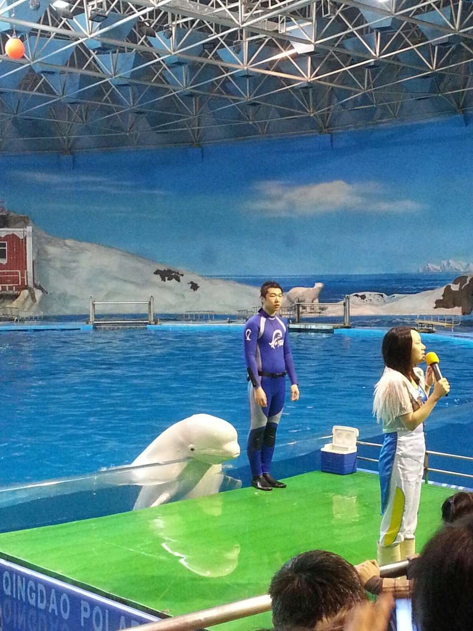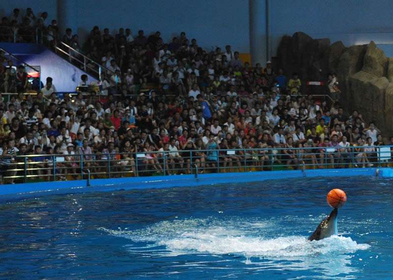 擁有1個大型表演池,3個寄養池,2000余個座位,可同時 3000余人觀看表演。游客們不僅可以近距離觀賞大白鯨、海豚、海獅等海洋動物的精彩表演,還可以在表演臺上與海豚PK玩轉呼啦圈,與海豚握手、親吻,和它們零距離接觸。