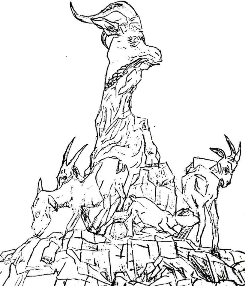 石像中大山羊居中,昂首遠眺,羊髯微拂,口銜“一莖六出”谷穗,雄渾有力的羊角伸向半空,顯得深沉、威武。大山羊腳下是一對親密依偎的小羊;另一對是母子羊,母羊回首顧盼在吸奶的幼羊,流露出濃濃的母愛之情。
