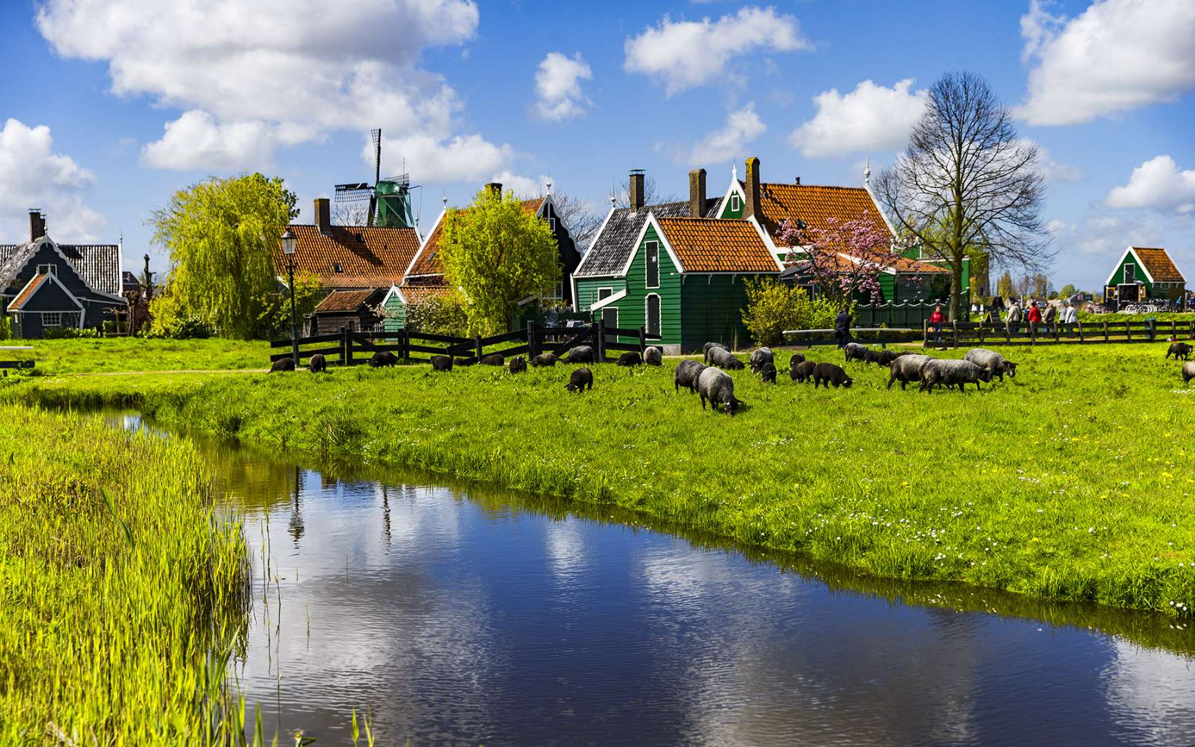 荷蘭桑斯安斯風車村(Zaanse Schans)是位于阿姆斯特丹北方15公里。古老的建筑生動描繪了17、18世紀的荷蘭生活。真實的房子,古老的造船廠,制作木鞋的表演,還有風車,是有居民居住、開放式的保留區(qū)和博物館。