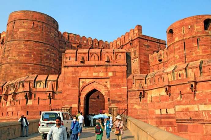 建立在阿格拉的“紅堡”,坐落在亞穆納河畔,占地38萬平方米,外圍由高十二米的紅色砂石城墻圍成,總體呈半圓形。曾經是莫臥兒王朝的皇城所在地,現在是伊斯蘭教建筑的代表之作,著名世界遺產和印度著名的旅游之地。從16世紀到18世紀初,阿格拉一直是印度首都。這里是統治全印度幾百年的莫臥兒王朝的首都所在地,這里融合了登峰造極的藝術成就與刻骨銘心的愛情故事。