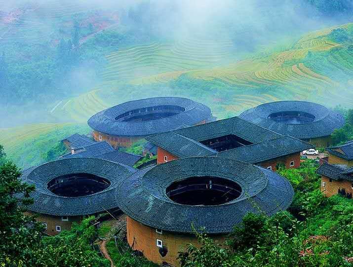 福建土樓產(chǎn)生于宋朝時代,明、清朝時期逐漸成熟,并一直延續(xù)至今。福建土樓是世界上獨一無二的山區(qū)大型夯土民居建筑,依山就勢,布局合理,吸收了中國傳統(tǒng)建筑規(guī)劃的“風(fēng)水”理念,適應(yīng)聚族而居的生活和防御要求,巧妙地利用了山間狹小的平地和當(dāng)?shù)氐纳痢⒛静摹ⅨZ卵石等建筑材料,是一種自成體系,具有節(jié)約、堅固、防御性強(qiáng)的特點,又極富美感的生土高層建筑模式。福建土樓的建筑材料甚為奇特,由粘土、糯米、紅糖、竹片、水組成,建成的土樓冬暖夏涼,具有很強(qiáng)的抗臺風(fēng)、抗地震能力。曾為湖南衛(wèi)視《爸爸去哪兒第三季》第三站的拍攝地。2016年8月3日,國家旅游局召開新聞發(fā)布會,嚴(yán)重警告南靖土樓景區(qū)。