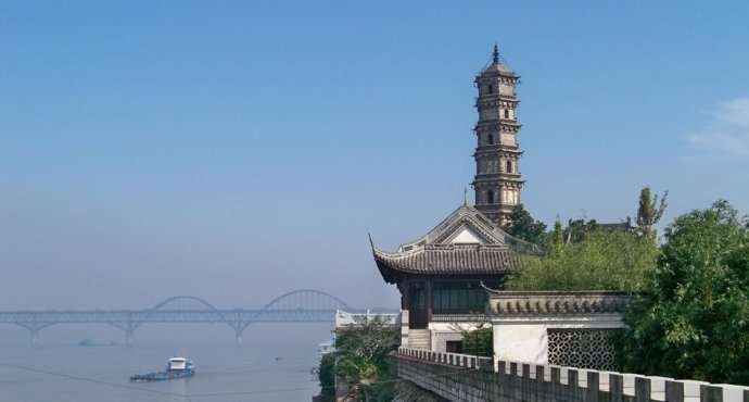 鎖江樓,位于江西省九江市區東北郊一公里處的長江南岸。這里原有一組古建筑,由江天鎖鑰樓(即鎖江樓)、文峰塔(即回龍塔)以及四條鐵牛等許多附設建筑組成,現僅存鎖江樓塔。