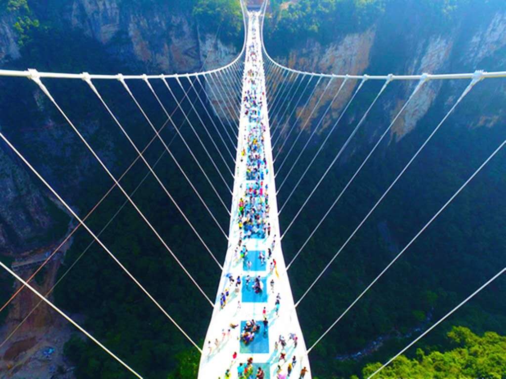云天渡所處地形懸崖溝谷、崗巒起伏、陡峭險峻,場地屬于原始巖溶地貌,地質(zhì)條件復(fù)雜。因地處喀斯特地貌區(qū)域,建設(shè)者們在前期巖體第三次施工鉆探中發(fā)現(xiàn)玻璃橋一端主塔下方80米深處有溶洞,會嚴(yán)重威脅橋梁安全;玻璃橋最終延伸60米,橋面拓寬2.8米,以增強橋的安全系數(shù)。版權(quán)所有山東聊城聊之旅國際旅行社有限公司,轉(zhuǎn)載必究!橋梁設(shè)計和施建方面,克服建筑選材、玻璃工藝、抗風(fēng)防滑、抗震減振、抗壓抗凍等多項技術(shù)難題, 玻璃采用高強度航天復(fù)合材料, 具有大尺寸、高硬度、高厚度、耐磨、防凍、超純凈、防爆、高荷載、防霉、防溫度劇降、脆性玻璃與柔性橋結(jié)合等諸多特性。