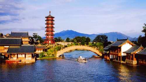 山環(huán)水繞的木龍湖,整個(gè)景區(qū)周邊自然景觀優(yōu)美,不僅有得天獨(dú)厚的漓江、疊彩山優(yōu)美的自然生態(tài)環(huán)境,還有歷史久遠(yuǎn)的古宋城等眾多歷史文化遺跡,歷史文化遺跡豐富。所以,在以宋城歷史文化主題公園為主的木龍湖景區(qū)總體設(shè)計(jì)方案時(shí),通過(guò)對(duì)現(xiàn)狀環(huán)境、歷史文化背景做全方位深入調(diào)分析和在進(jìn)行多次學(xué)習(xí)考察的基礎(chǔ)上,聽(tīng)取了各方意見(jiàn),不斷完善、修改、深化設(shè)計(jì)方案,確定木龍湖景區(qū)在加強(qiáng)對(duì)歷史文化遺跡和自然生態(tài)環(huán)境保護(hù)的基礎(chǔ)上,版權(quán)所有山東聊城聊之旅國(guó)際旅行社有限公司,轉(zhuǎn)載必究!有限度地開發(fā)利用風(fēng)景文化旅游資源,達(dá)到人與自然的共生的基調(diào)。木龍湖景區(qū)總體布局以中國(guó)傳統(tǒng)造園思想為指導(dǎo),結(jié)合建筑范圍內(nèi)地形地址條件,以史料、《清明上河圖》等宋畫為基本素材,就形成了宋代建筑特征。木龍湖景區(qū)建設(shè)突出了自然山水與歷史文化相融合的特點(diǎn),在木龍湖北側(cè)依托宋代東鎮(zhèn)門、宋城墻遺址等歷史人文景觀,建設(shè)包括宋街、半邊街、古宋城、木龍塔、木龍夜泊、淺橋魚影、聽(tīng)荷軒等具有宋代建筑氣息的古建筑群落的景點(diǎn),木龍塔是以上海宋代的龍華塔為藍(lán)本建造的,高45米。在木龍湖南側(cè)與疊彩山之間建筑以觀賞林地、草地、溪流、瀑布為主的生態(tài)景觀帶。