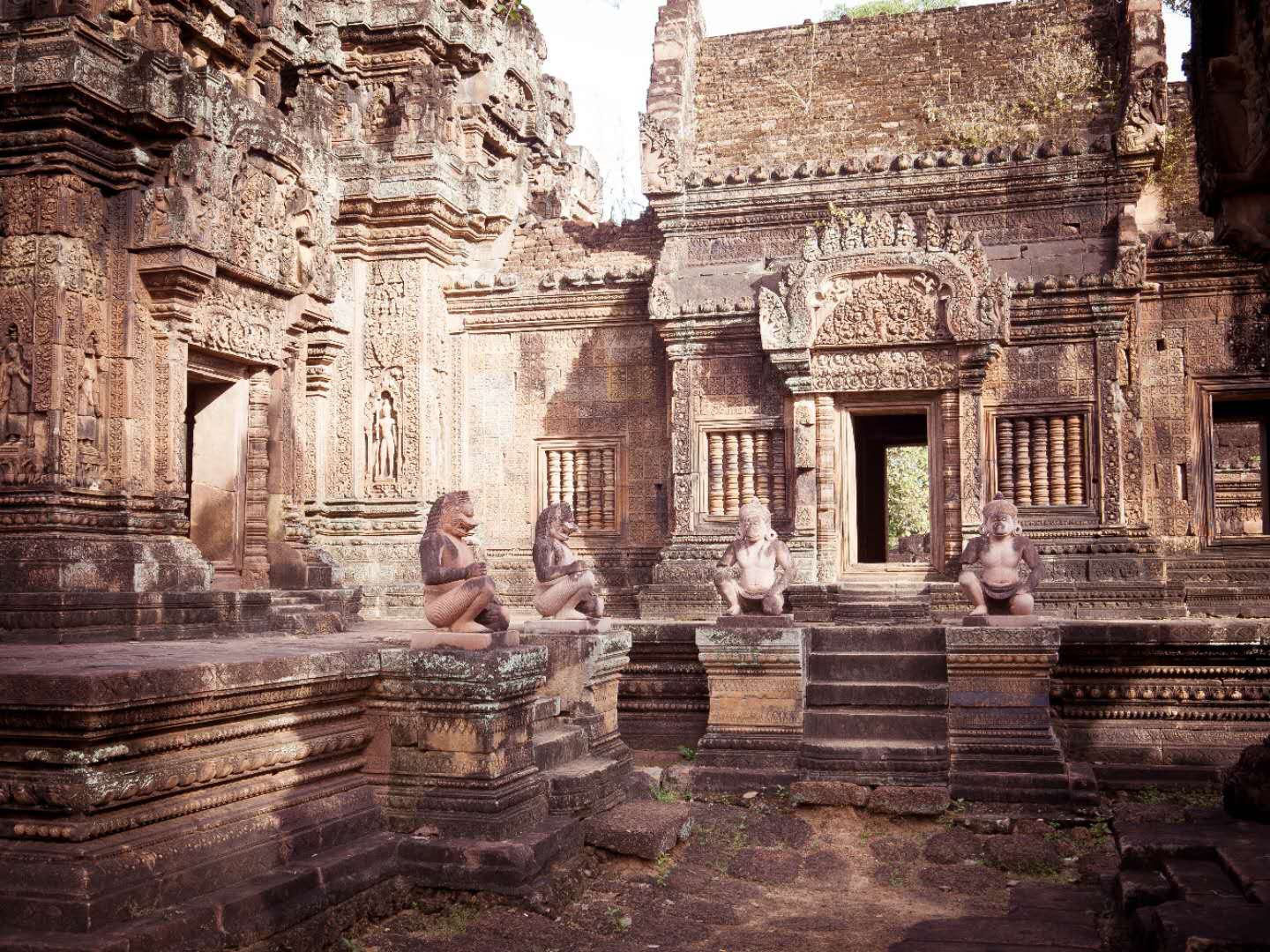 以下寺廟都離開了吳哥中心地區(qū),但是只要給你的摩托司機多付幾美元(每天US$10),吳哥環(huán)城游就可以將女王宮和高布思濱(KbalSpean)包含進去。如果再加幾塊錢(每天US$15),就有可能包含崩密列(BengMealea)了。普通的吳哥聯(lián)票只能進入女王宮和高布思濱。