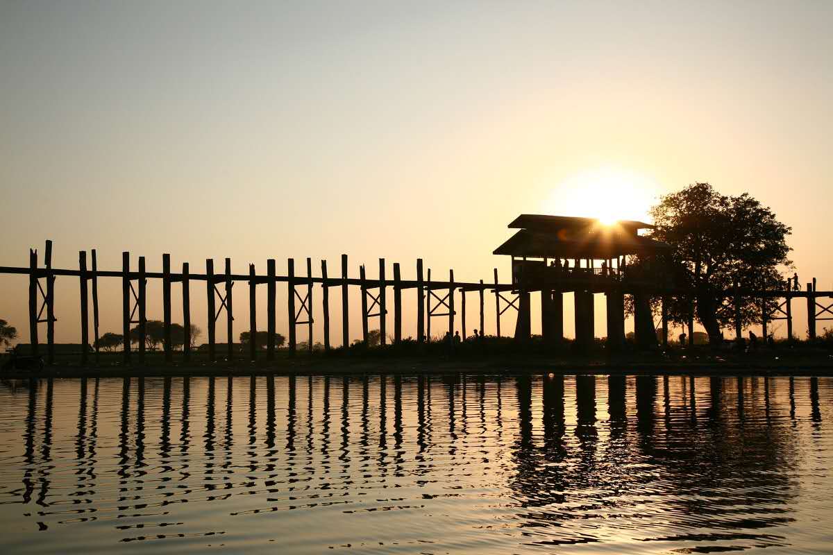 烏本橋建于1851年,長1200米,全橋完全由柚木鉚合而成,是世界上最古老和最長的柚木結構橋。橋柱與橋柱之間相距3米遠,橋柱有1000多根。整座橋相接處沒有使用一顆鐵釘,全靠斗榫。這座橋已經歷經150年的風風雨雨,但是依然結實。
