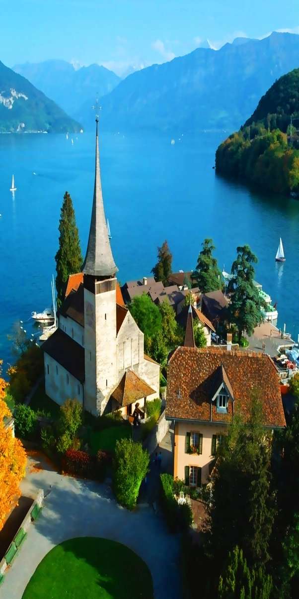 施皮茨鎮(zhèn)位于伯爾尼東南三十多公里處、圖恩湖南岸一水灣邊上,海拔628米,屬伯爾尼高原。這里碧水如鏡,雪峰環(huán)抱,空氣清新,是瑞士著名的休養(yǎng)和水上運動勝地。