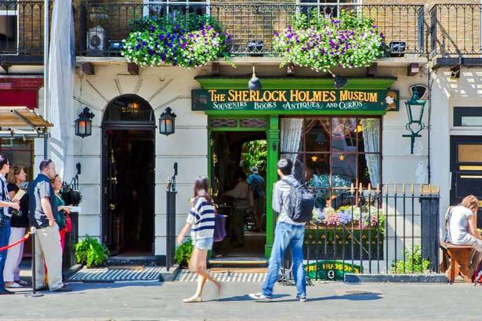 貝克街221B號(及239號)是于1990年成立的福爾摩斯博物館(Sherlock Holmes Museum),館內(nèi)的布置擺設都以小說中提及的情節(jié)為佐,更增添福爾摩斯舊居的真實性。這是個精巧迷人的觀光場所,福爾摩斯與華生醫(yī)生的辦公室都依據(jù)故事內(nèi)容重新裝潢。你可以坐在一樓書房的爐子旁,試戴福爾摩斯的帽子,并拿著他的煙斗,模仿他的姿勢。再走一點,就會看到真正的221B號,它現(xiàn)在是國家教堂,這里每周都會收到從世界各地的福爾摩斯迷寄來的一百多封信。親自造訪教堂的人們,可以免費拿到福爾摩斯簡冊與明信片。