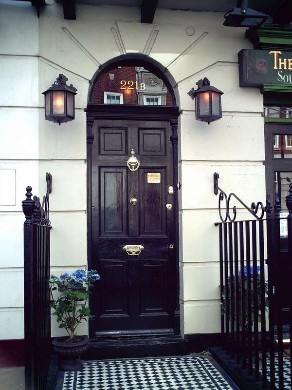 說起貝克街、福爾摩斯他們所居住的221b是很有名的、但當時貝克街是從東側(cè)從南到北有1號~42號、西側(cè)由北到南是44號~85號。并不存在221號。也就是說221b只是作者制造出來的虛幻的地方。順便說一下、221b的“b”并不是英文字母“b”,而是法語中的bis(~2)的意思、221地址是表示有2戶人家的記號。當前的貝克街221b是金融公司(ABBY NATIONAL)、鄰接的場所建有夏洛克·福爾摩斯的住所。